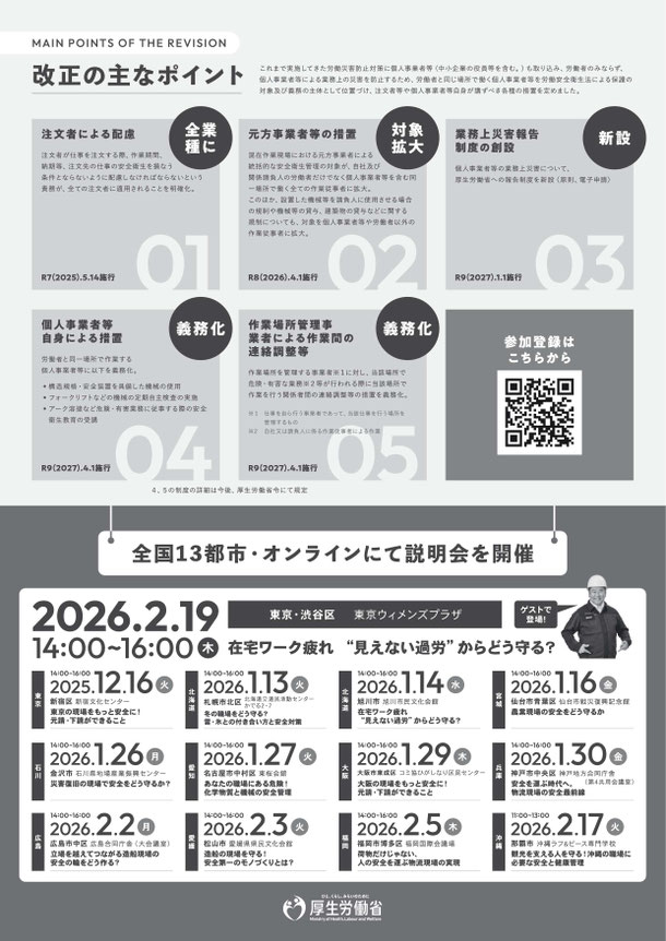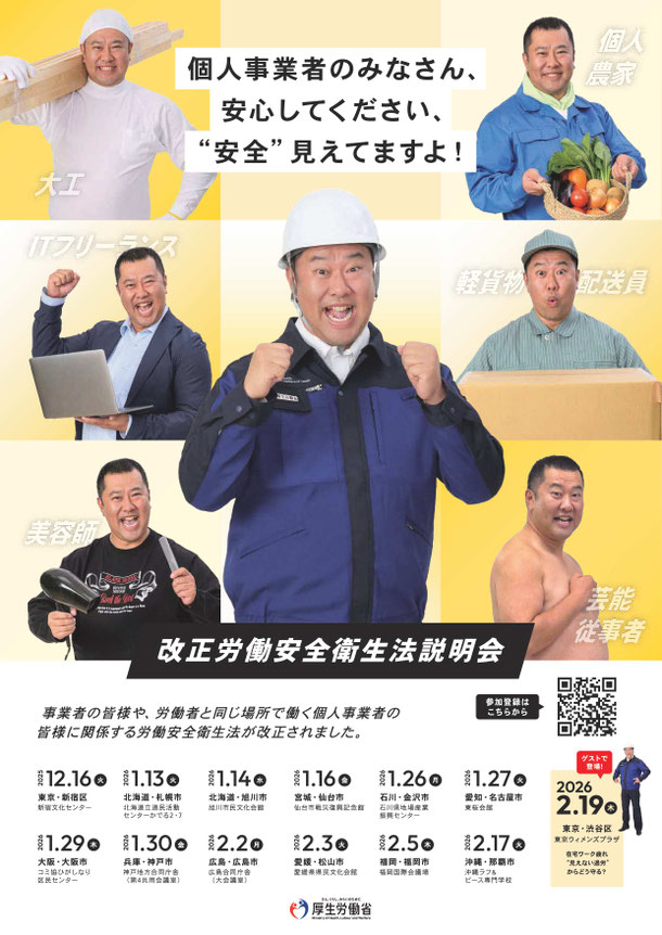 個人事業主等の安全衛生対策の推進に係る「改正労働安全衛生法説明会」の開催について